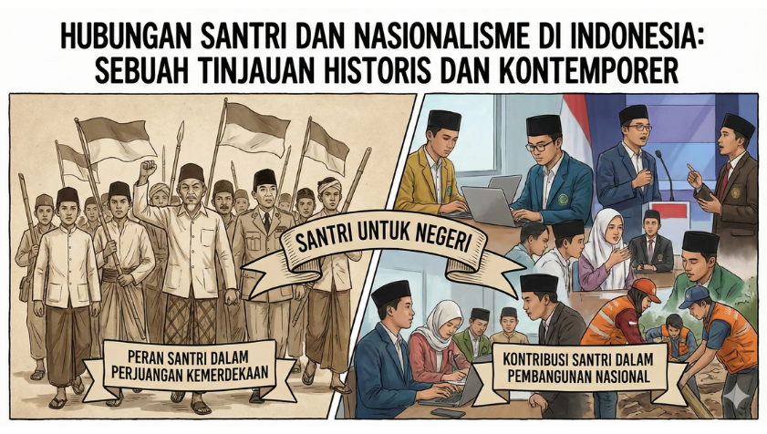 Hubungan santri dan nasionalisme di Indonesia adalah hubungan yang bersifat historis, teologis, dan strategis. Sejarah membuktikan bahwa tanpa peran santri dan ulama, kemerdekaan Indonesia mungkin akan memiliki cerita yang berbeda. Dari Perang Diponegoro hingga Resolusi Jihad, darah santri telah tumpah untuk menyatukan ribuan pulau menjadi satu bangsa.